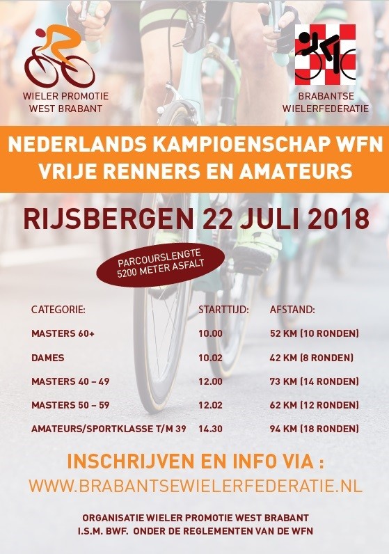 Het NK van de WFN (alle Vrije Bonden en KWNU) is op zondag 22 juli 2018 in Rijsbergen (NB)