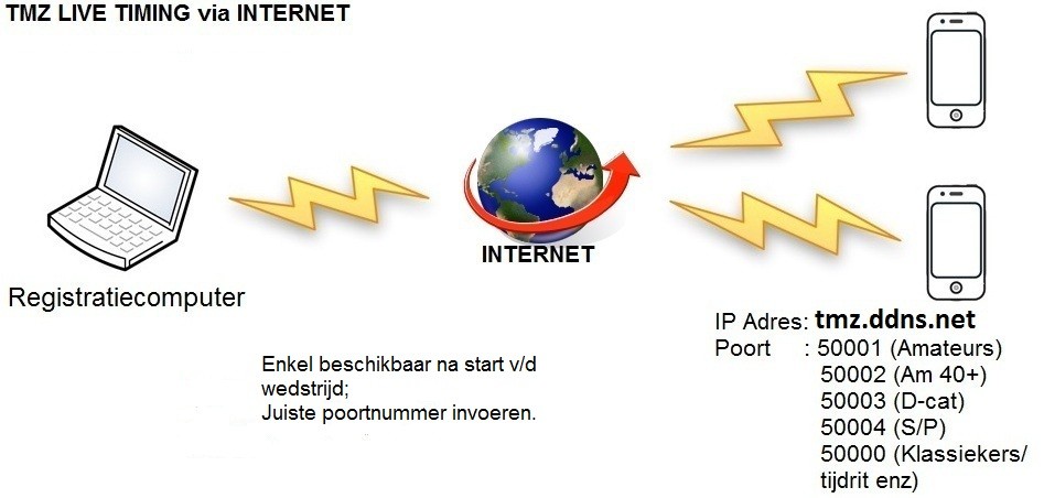 Met ingang van het nieuwe seizoen gaat live-timing via internet. Hierdoor kun je overal langs of bij het parkoers (of waar dan ook ter wereld) het wedstrijdverloop live volgen. Elke doorkomst direct op je scherm met doorkomstposities, rugnummer + naam en tijdsverschillen.