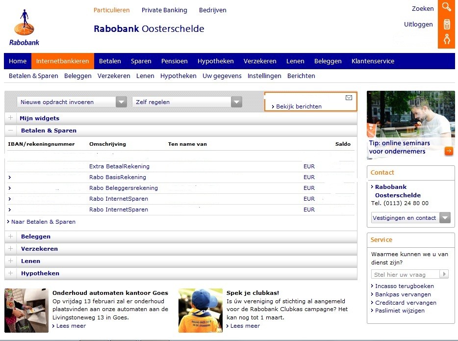 1. Log op gebruikelijke wijze in bij de RABOBANK-site voor internetbankieren;