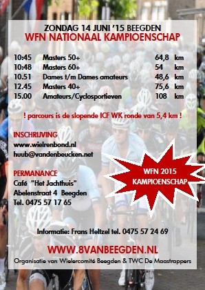 Het NK 2015 is van locatie en datum gewijzigd. Gepland was zondag 16 augustus in Effen (bij Breda) en dit wordt nu zondag 14 juni 2015 in Beegden (bij Roermond).