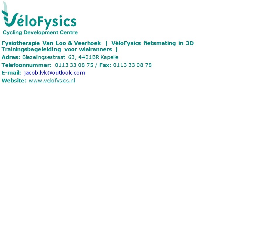 Contactpersoon is Jacob Wijnstra (de kersverse TMZ kampioen 2017 bij de Amateurs) en het onderzoek zal in zijn praktijk in Kapelle plaatsvinden. Het is enkel voor D's, Amateurs 40+ en Amateurs. Je moet zelf contact maken en een afspraak maken.