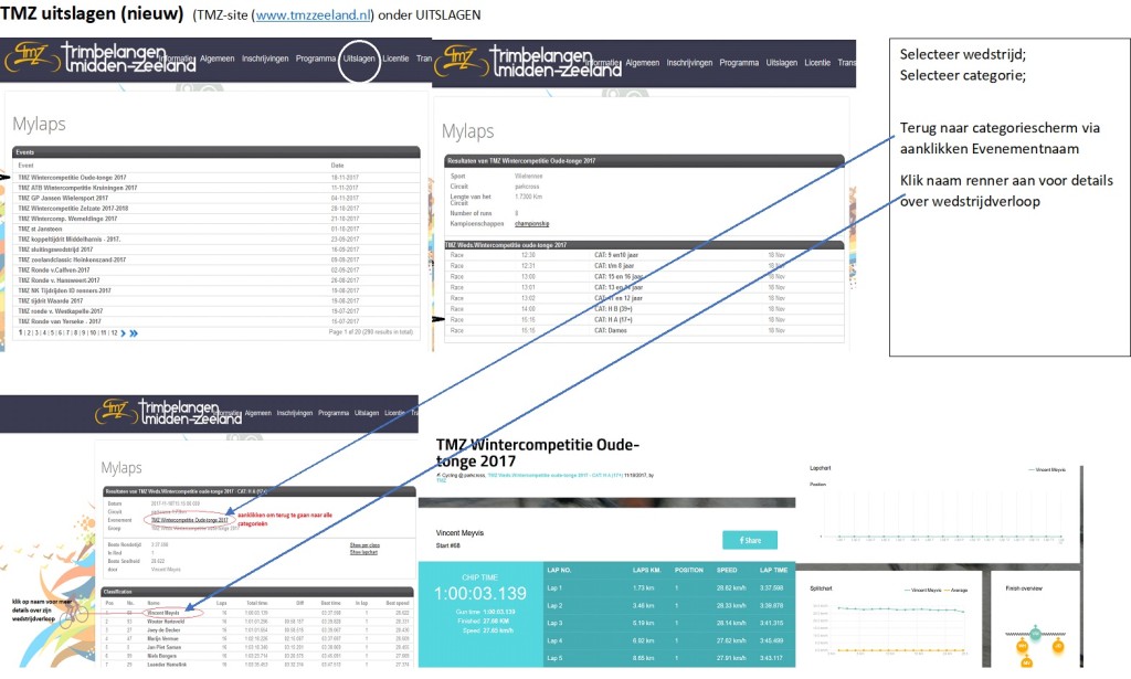 We hebben de uitslagverwerking verder geautomatiseerd. Zodra de uitslagen op Mylaps staan kunt U ze ook op de TMZ-site vinden. Ga naar UITSLAGEN en klik TMZ UITSLAGEN (nieuw) aan.