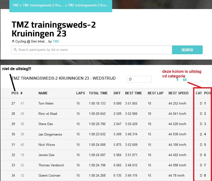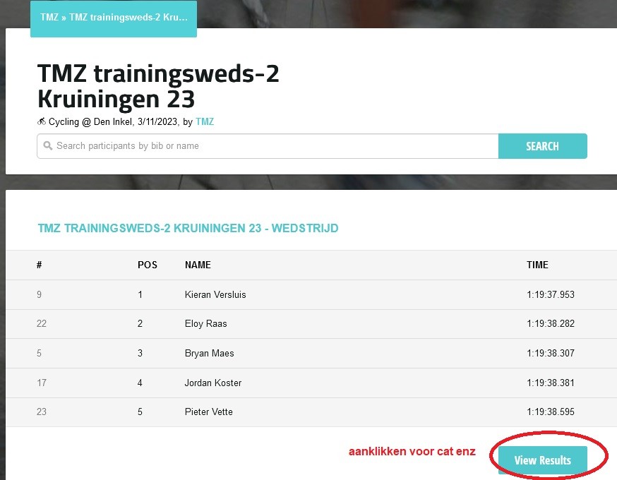 Zonder dat TMZ er invloed op heeft is bij Mylaps de uitslag op de sites iets gewijzigd. Volg onderstaande afbeeldingen en je kunt alle wedstrijden per categorie de uitslagen zien.
